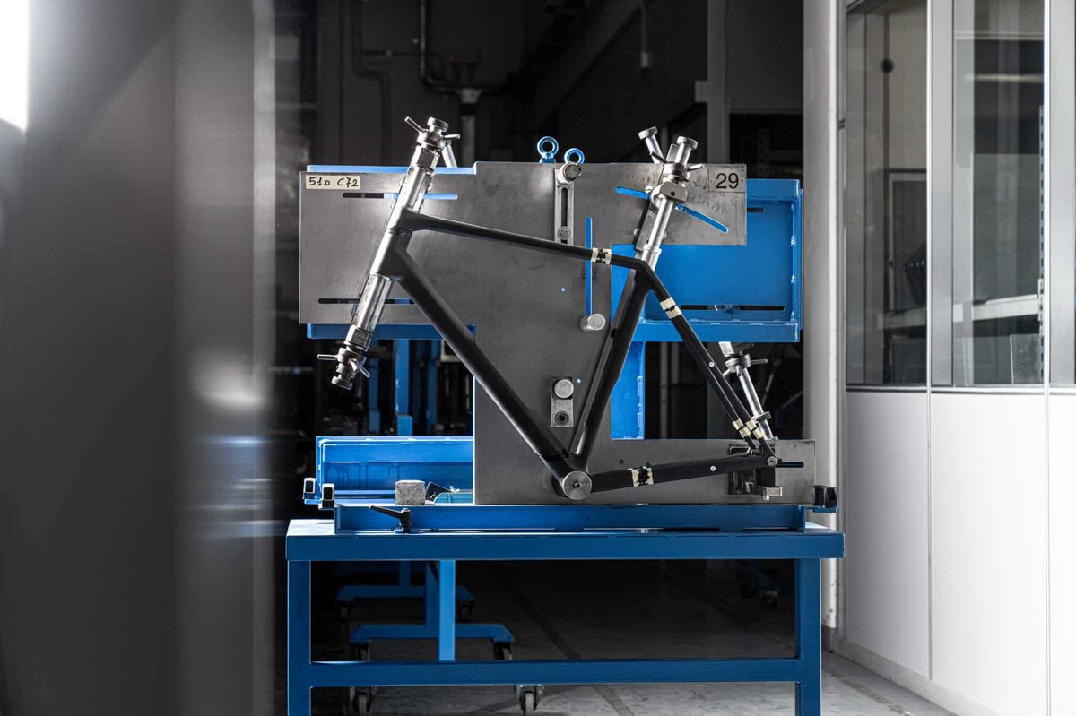 Le C72 conserve la philosophie de construction modulaire qui distingue la gamme C depuis ses origines. Le cadre est assemblé à partir de sept pièces en carbone (tubes et jonctions) collées et positionnées dans des gabarits dédiés, puis finies à la main. La production manuelle 100% italienne se déroule en quatre étapes : assemblage et finition à Cambiago, peinture à l’aérographe du côté de Pise et enfin, contrôle qualité final à Cambiago.