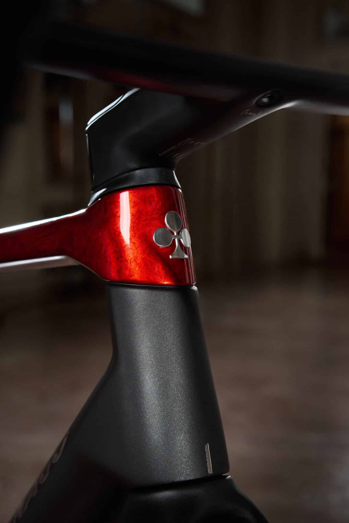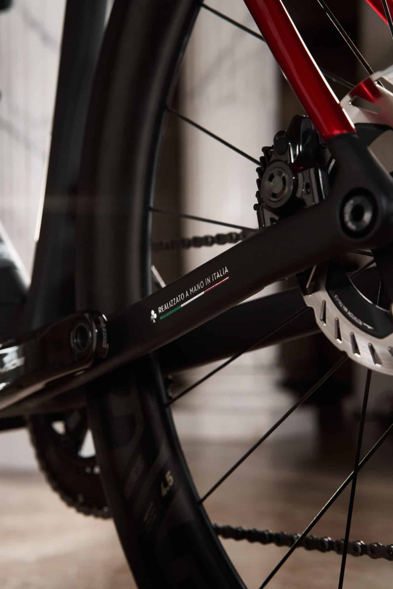Là où la quasi-totalité des vélos de route haut de gamme adoptent aujourd’hui une construction monocoque, Colnago maintient son approche modulaire sur la gamme C. Les tubes et jonctions en carbone sont collés dans des gabarits dédiés, puis finis à la main par les équipes de Cambiago. La peinture est ensuite réalisée à l’aérographe dans l’atelier de Pise, avant un contrôle qualité final. Quatre étapes, deux sites, un savoir-faire délibérément artisanal.